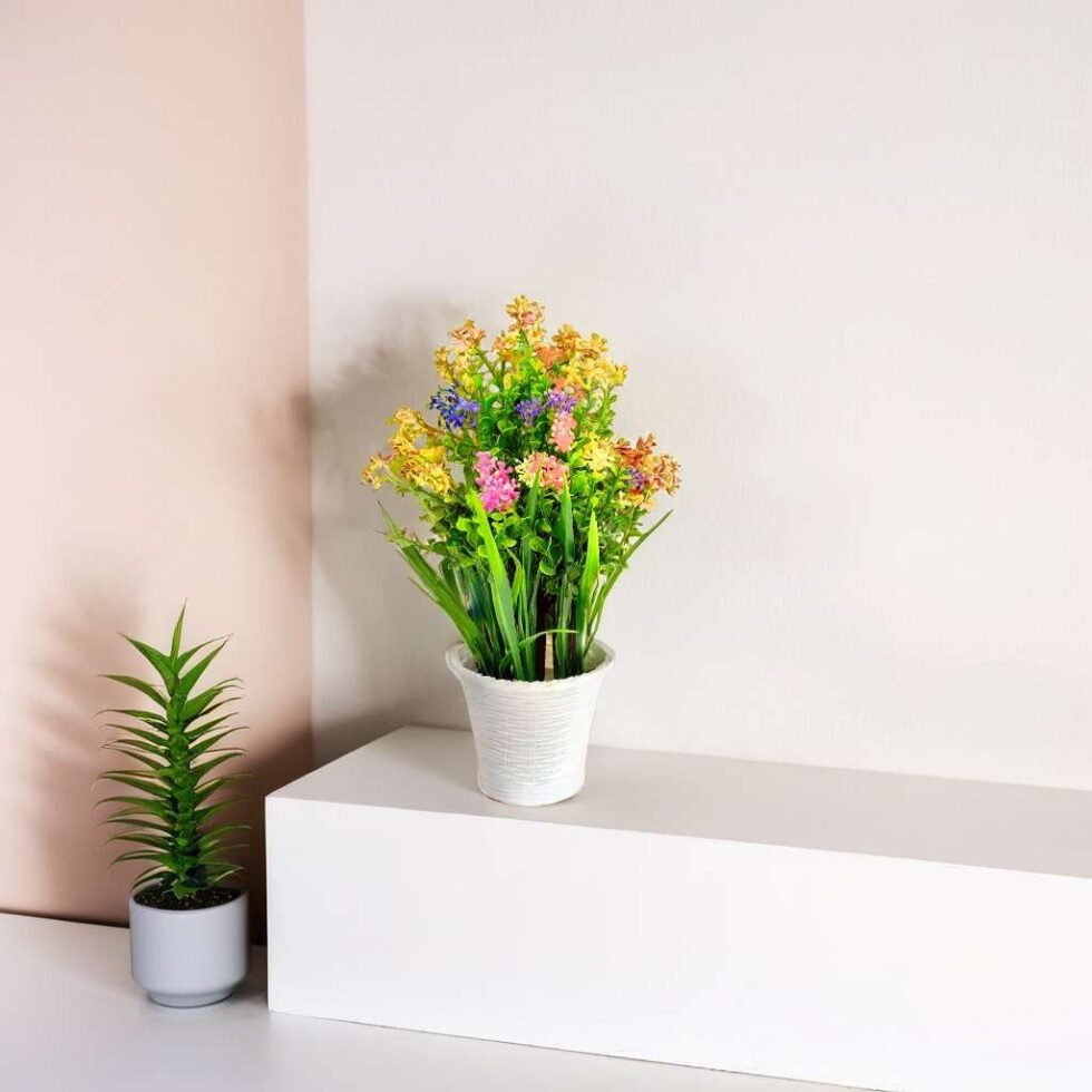 Wild Artificial Flower Plants With Cute Hexa Pot Flower Plant For Home Office Décor Tabletop And Desk Decoration Artificial Flower For Balcony Indoor Décor (RV-AP5)